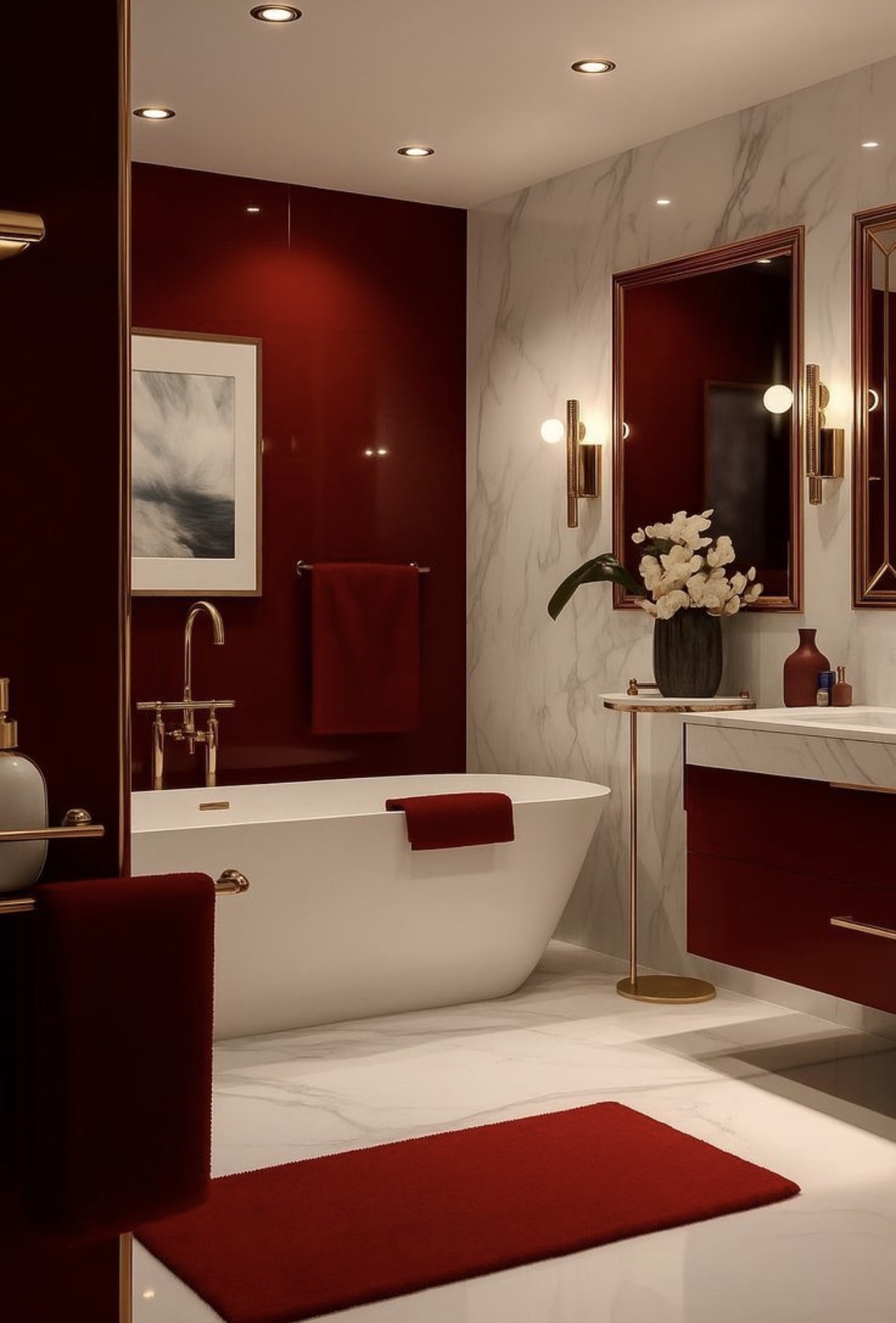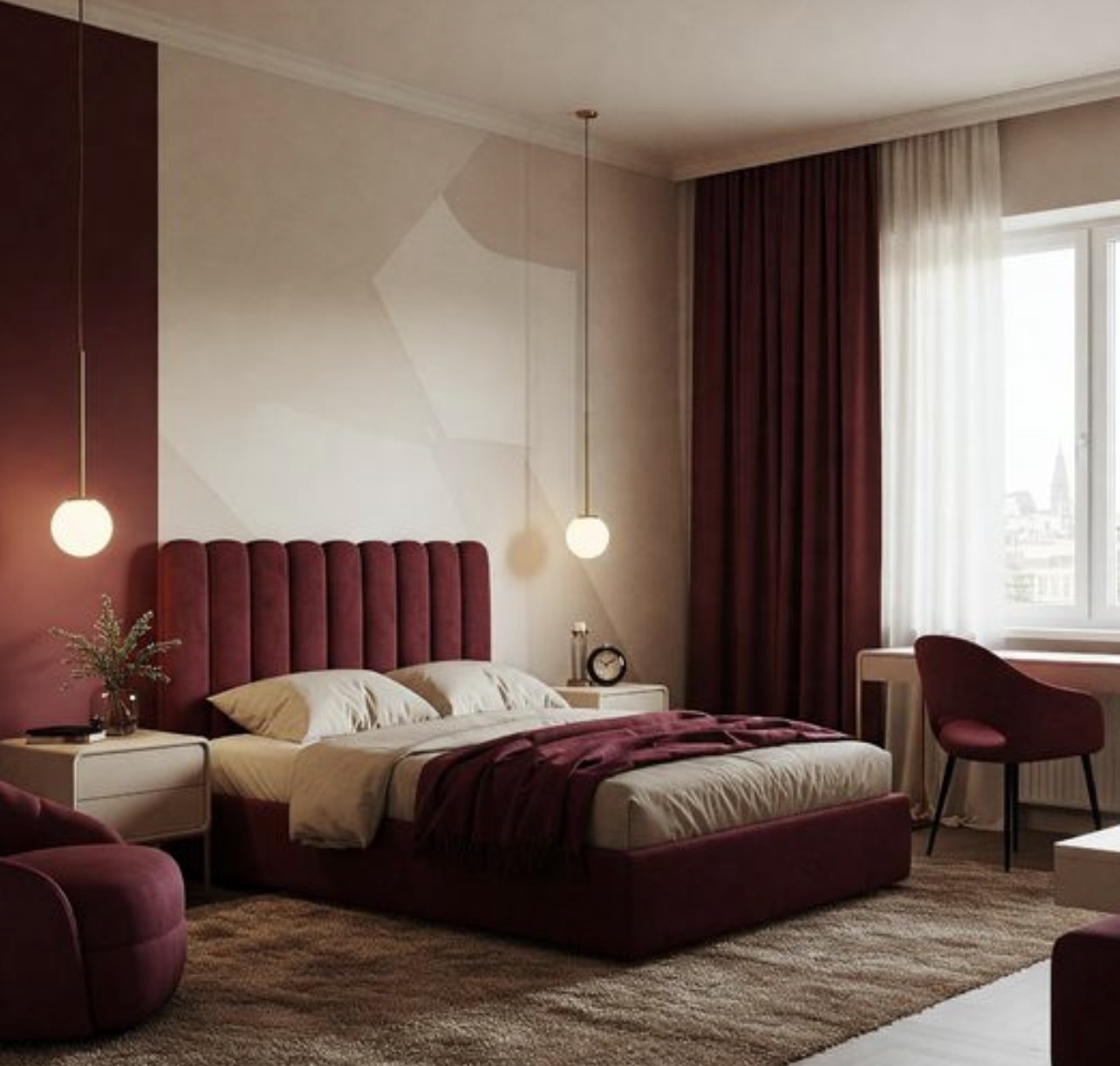 Diseño moderno y elegante con predominio del color rojo, creando ambientes sofisticados, cálidos y llenos de personalidad. Combinación armoniosa de iluminación, texturas suaves y detalles decorativos que resaltan cada espacio.